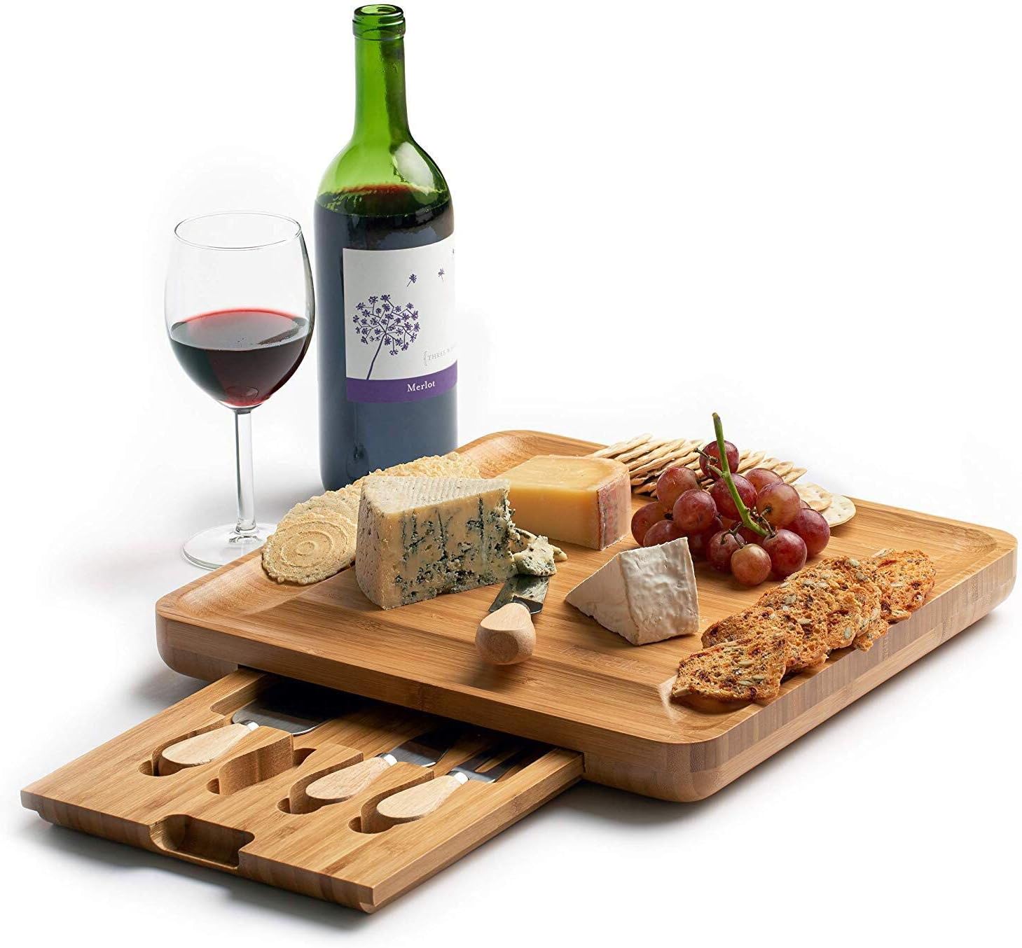 Professional reviews from industry experts Machika Bamboo Cheese Board Set with Slide Out Drawer and Stainless Steel Knives Perfect Birthdays, Housewarming Parties, Family Reunions & Wedding Gifts